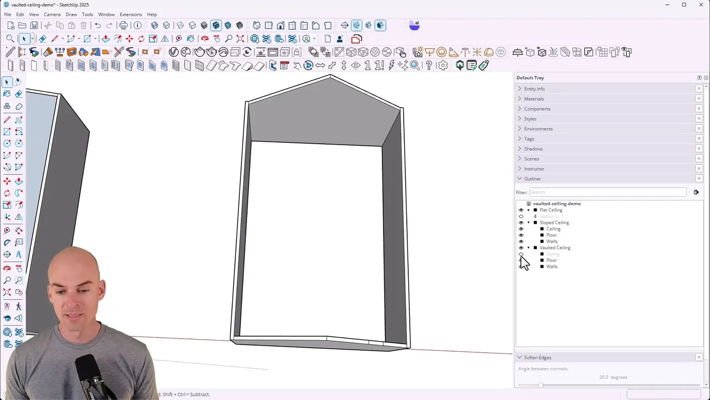 Vaulted ceilings are often the most intimidating to model, but don’t let that stop you. Like sloped ceilings, vaulted ceilings are just geometry, and once you break down the steps, they’re straightforward to create.