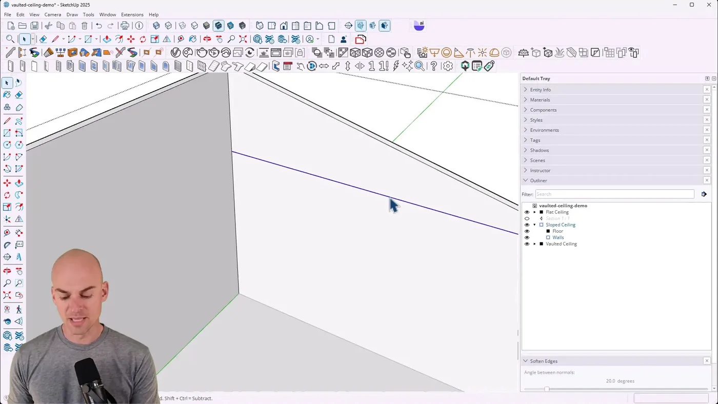 Modeling sloped and vaulted ceilings in SketchUp doesn’t have to be complicated. By understanding the underlying geometry and using basic SketchUp tools effectively, you can create stunning, realistic ceilings that enhance your interior designs. Remember to stay organized, use groups and the Outliner, and check your face orientations regularly.