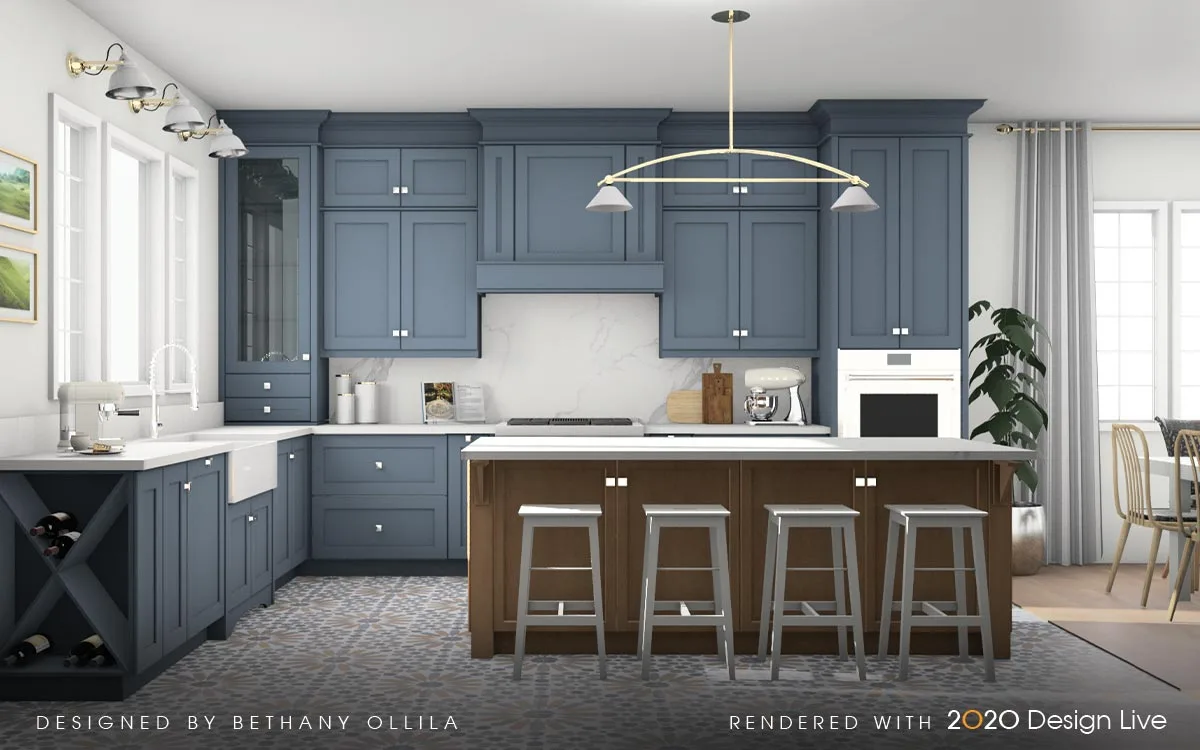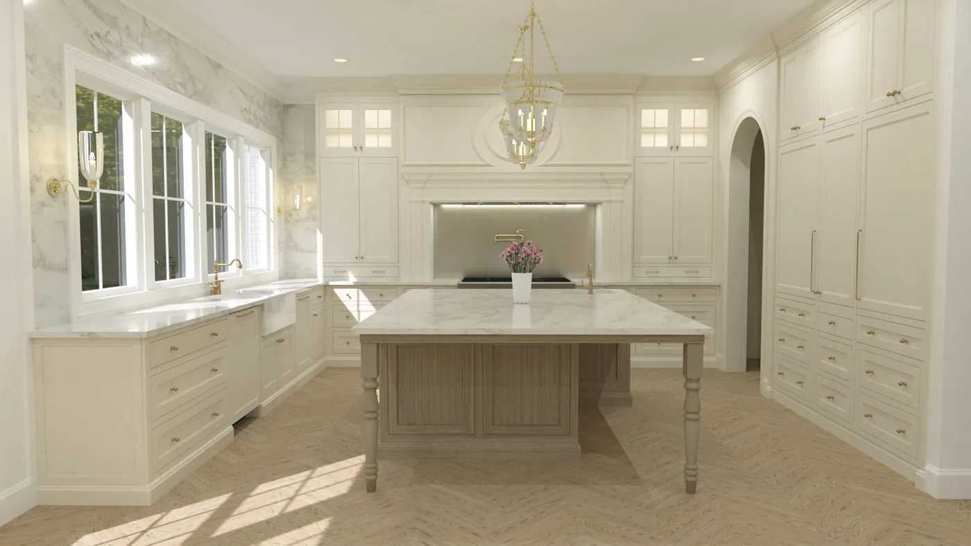 In a recent kitchen design project we had for Arched Manor (the design firm I run with my wife Megan), the client was working with a builder that provided some basic cabinet renders of their kitchen. They wanted to see a “real-life” render that incorporated their design choices, appliances, wood tones, paint colors, countertops, light fixtures, etc. so they could make some key decisions before construction began.