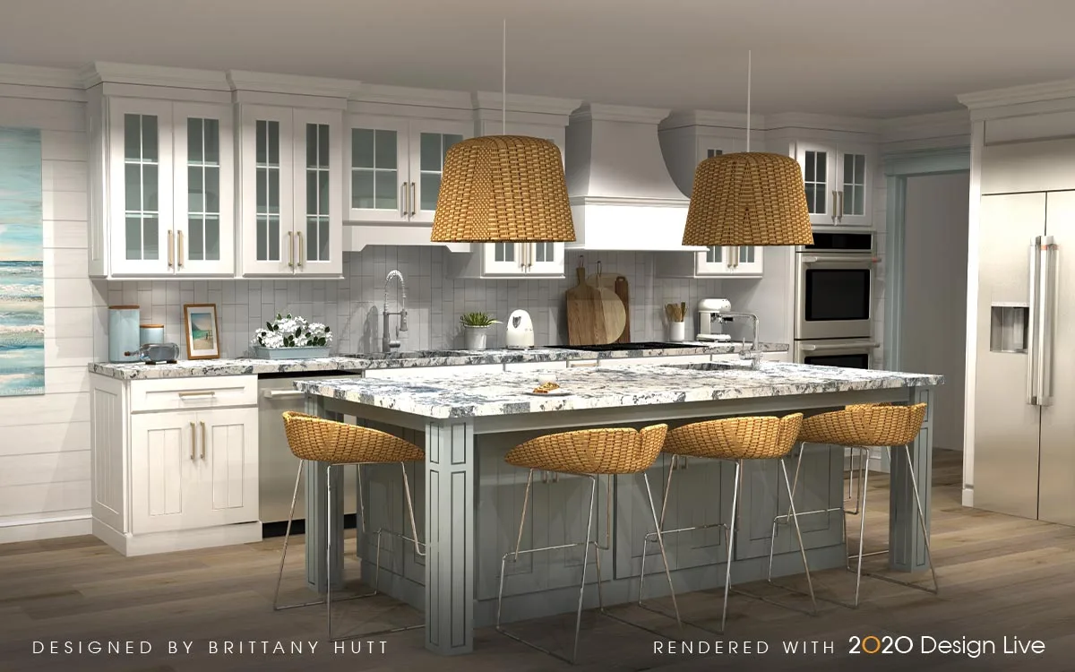 2020 Design, however, does not produce the high-quality renders that clients have come to expect. It’s also hard to have full control of the materials, lighting, and other real-life elements of a kitchen within 2020 Design. Below are renders that are posted on the 2020 Design site as examples – they give you a good indication of the level (probably the highest level) of realism that their rendering engine can achieve.