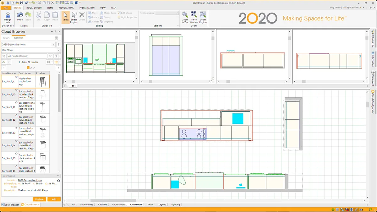 On the other hand, 2020 Design boasts robust integration capabilities, a large selection of real-world cabinet brands/collections, and functionality for invoicing, quoting, and ordering.