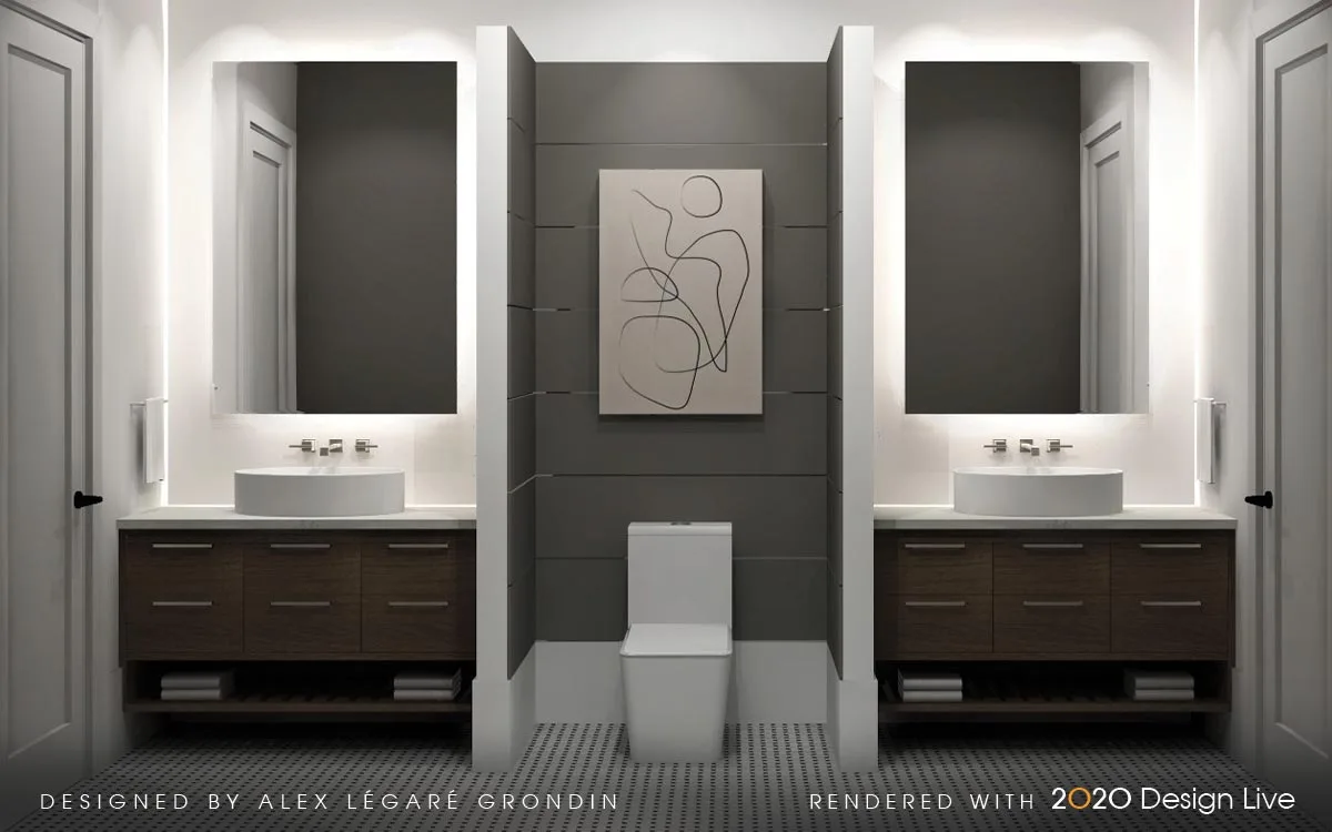 One of the main differences between SketchUp and 2020 Design is that in SketchUp, you model in 3D and then use LayOut to produce 2D diagrams and elevations. In 2020 Design, it’s reversed – you design in 2D and then use their visualizer to create 3D renders.