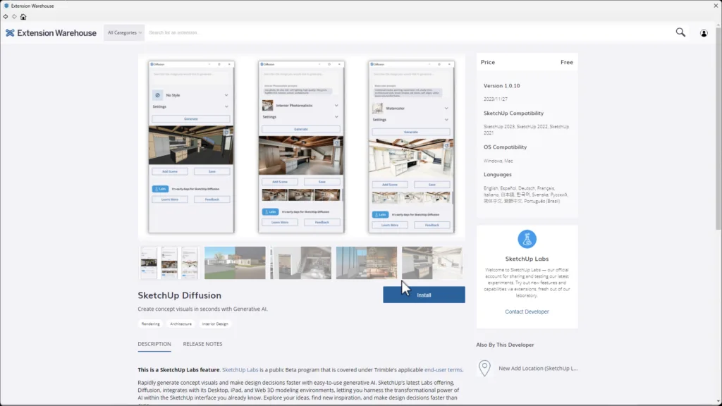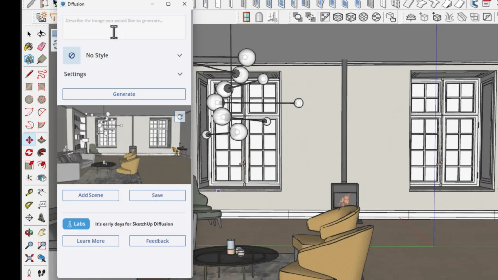 - SketchUp Diffusion is a free AI rendering tool baked into SketchUp Pro via SketchUp Labs.