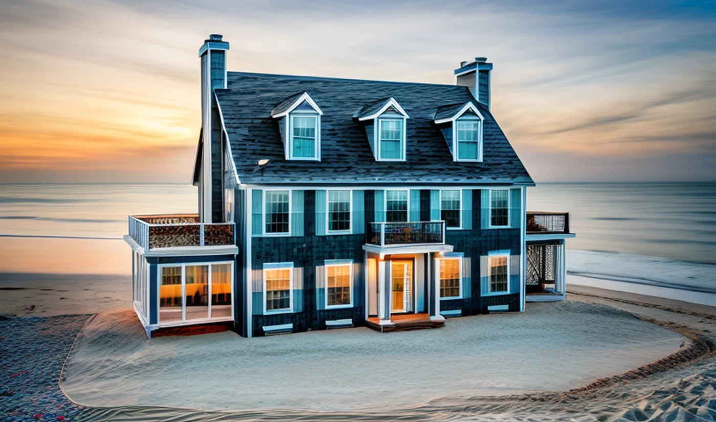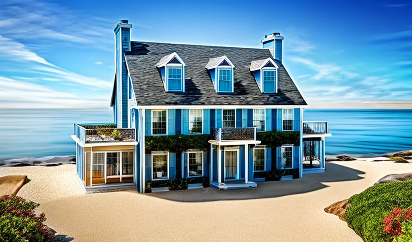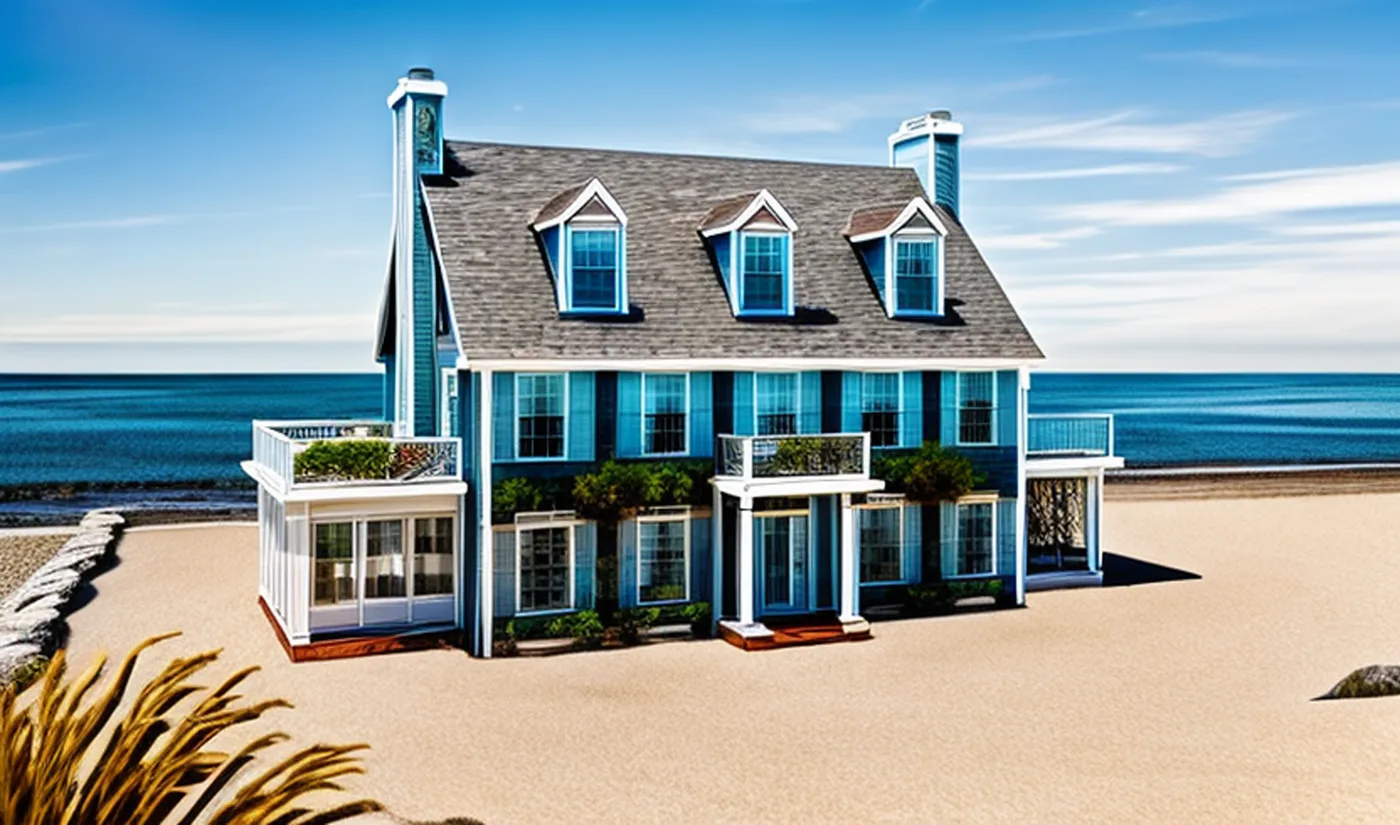 Let’s try one more test…using the prompt “house on the beach, ocean in the background, gravel yard” produced the following AI renders: